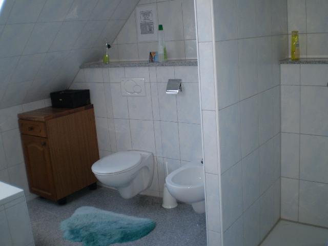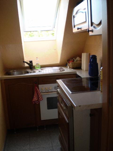 Das Zimmer ist mit Echtholzm?beln ausgestattet. Der Fu?boden in der gesamten Wohnung ist mit Granitfliesen gefliest und hat eine Fu?bodenheizung. Die K?che ist klein aber mit allem ausgestattet. Sp?le, Glasceranfeld, umschaltbarer Umluftbackofen, Mikrowelle, Sp?lmaschine, Toaster, Gefrierschrank, K?hlschrank, Kaffeemaschine und Wasserkocher. Es ist alles Geschirr und Kocht?pfe vorhanden. Das Bad ist gro? und in ansprechender Ausstattung. Wanne, separater Dusche, Bidet, WC, Waschbecken und Fenster. In der Diele ist u.a. ein Vorratsschrank und ein Klapptische. Von dem Zimmer ist ein Zugang auf den gro?en Balkon (7,5 m x 4 m, der mit den anderen WGler genutzt wird. In der Waschk?che ist die Waschmaschine ein Trockner und Platz zum aufh?ngen der W?schest?cke zum Trocknen.